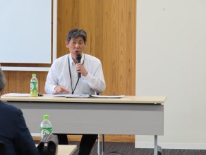 Information , まちづくり委員会 , 事業報告 2025年度 第1回例会を開催しました(まちづくり) 2025.08.08 自分を守り、企業・地域を守るための取組について 7月31日(木)、宮崎県防災庁舎において委員会メンバーが出席し第1回例会を開催しました。 講師に、宮崎県総務部危機管理局 危機管理統括監 津田 君彦 氏をお招きしました。 宮崎県総務部危機管理局
