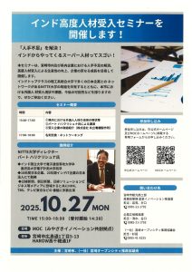 インド高度人材受入セミナーのご案内(宮崎市、MOC)